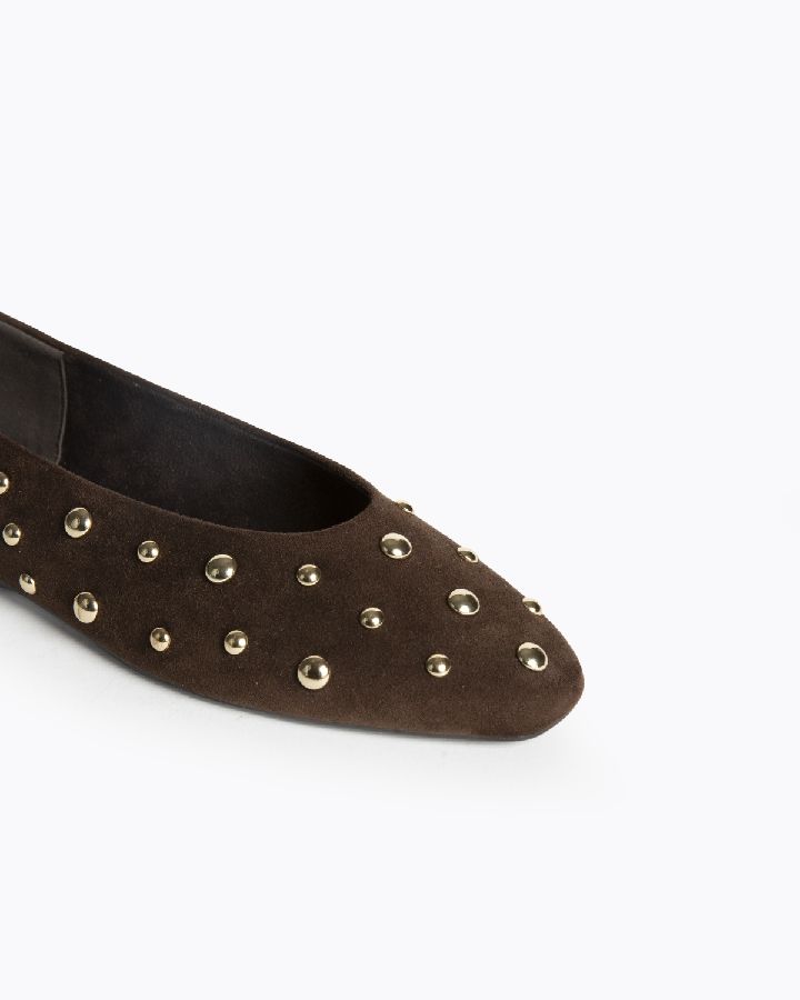 Atrévete a destacar con estos elegantes flats adornados con perlas metálicas de estilo punk-chic. Su diseño puntiagudo añade un toque sofisticado, mientras que las aplicaciones en relieve elevan el look con una actitud moderna. Perfectos para quienes desean combinar confort con estilo, estos zapatos se adaptan tanto a outfits formales como casuales. Disponibles en color Negro, Camel y Café ¿Con cual te quedas?