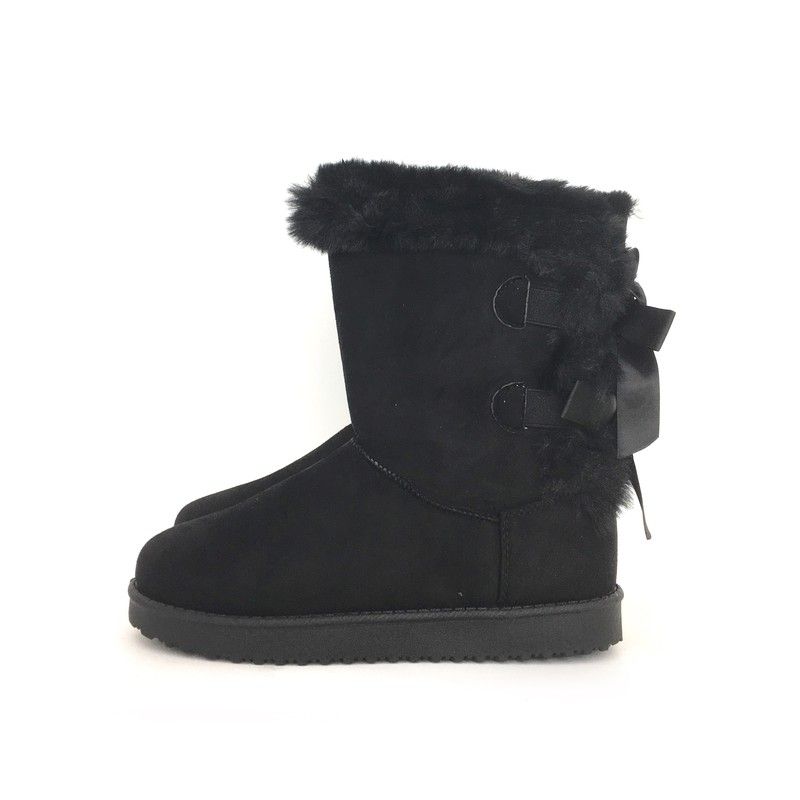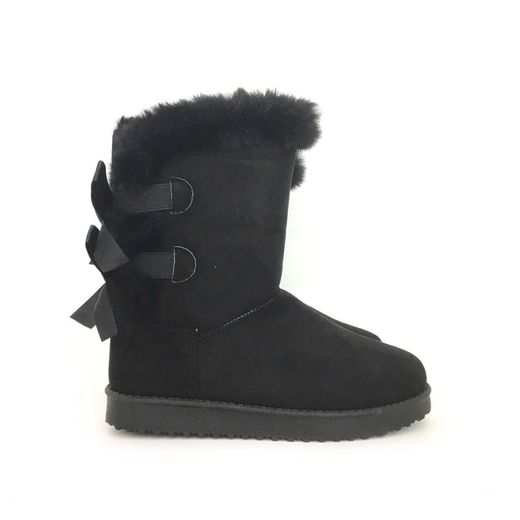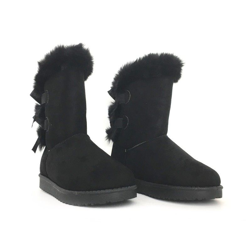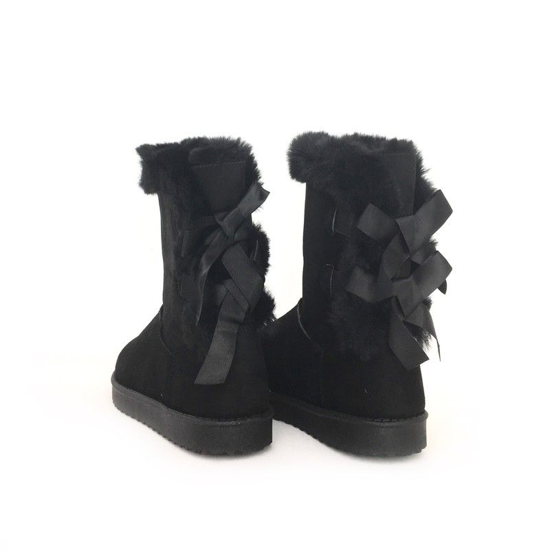 Botín plano para mujer estilo australiano forrado de pelo de punta redonda y con lazos en el Contrafuerte como